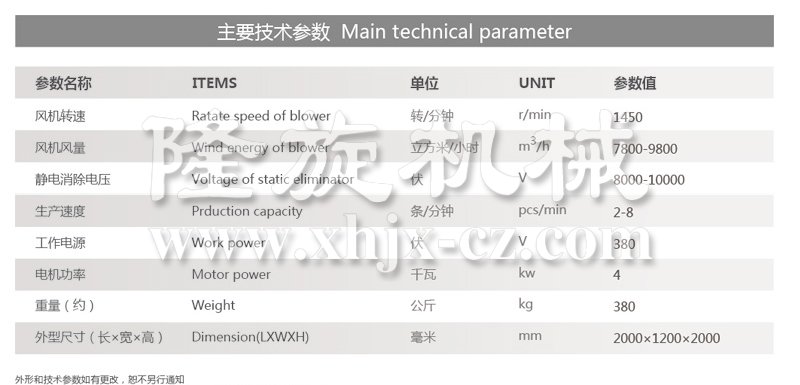XH型集裝袋內(nèi)部清理機(jī)主要用于高質(zhì)量集裝袋(食品、化工袋等)內(nèi)部清理,使達(dá)到清潔要求。工作原理通過(guò)風(fēng)機(jī)把集裝袋吹漲,在風(fēng)吹氣流的震動(dòng)下,將袋內(nèi)部的雜質(zhì)吹除,同時(shí)靜電消除裝置使雜物不再吸附袋內(nèi),雜質(zhì)由氣流收集到儲(chǔ)存箱中。本機(jī)操作簡(jiǎn)便,能耗低,效率高,省用工。